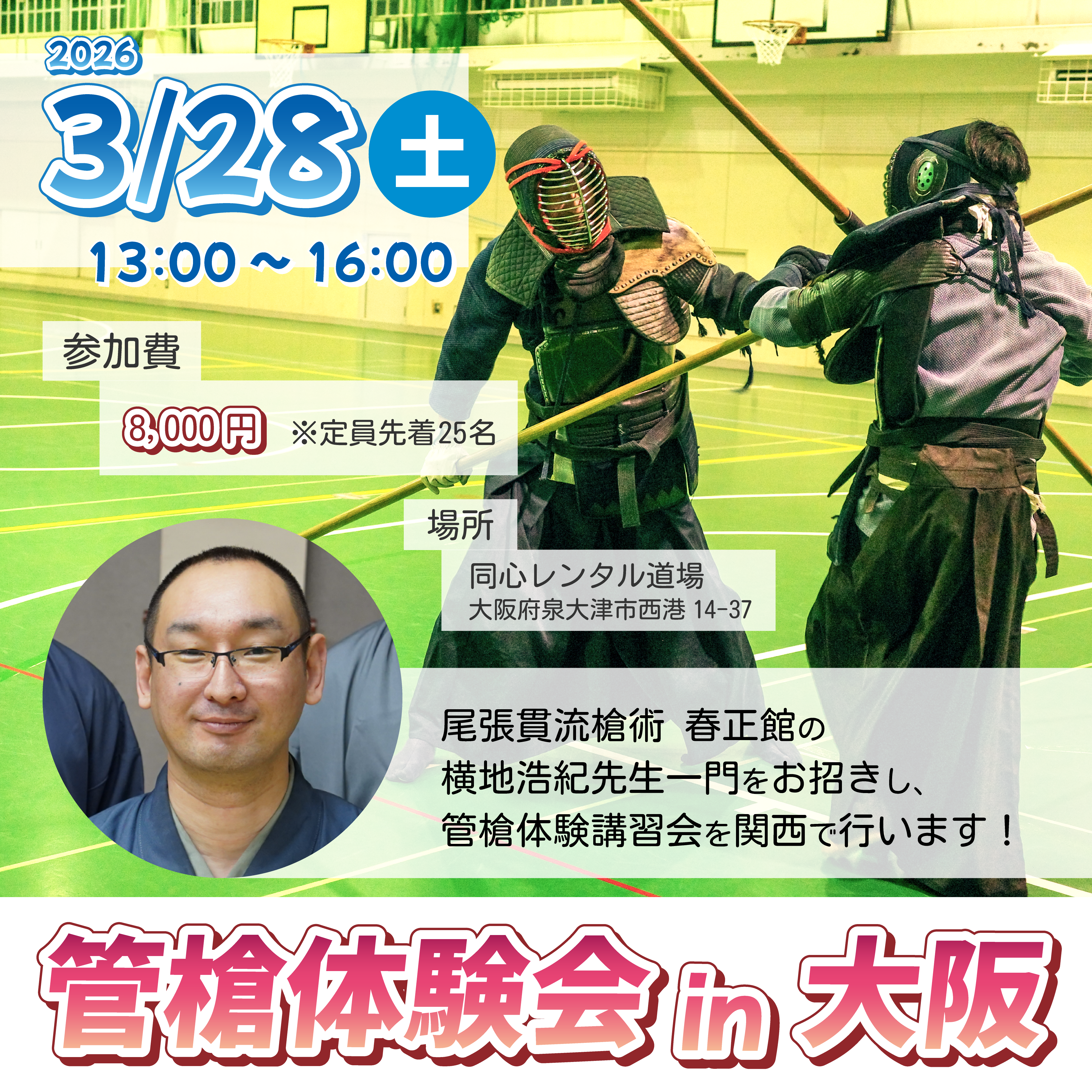 春正館館長、尾張貫流槍術の横地師範に先生として来ていただきます!